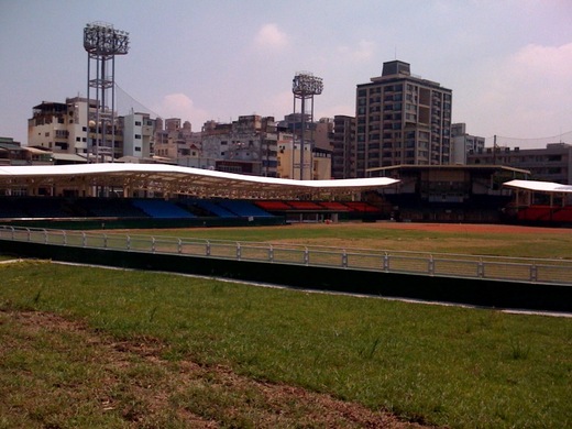 距離世運開幕還不到30天,所有比賽場地陸續完工中,位於愛河邊的立德棒球場,本次世運規劃成壘球比賽場地,雖然是邀請賽,主辦單位還是將球場改裝,從內野看台波浪照形的遮陽平台,到外野綠地造景,讓有點破舊的球場,瞬間改頭換面,不過球場草坪還是有部份未修整,希望主辦單位能加快腳步。