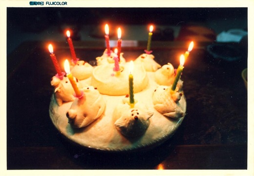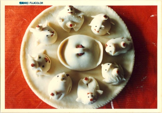 當我有記憶的時候,過年除壓歲錢、年夜飯、吃元寶、大紅炮之外,最期待就是在元宵節當天母親用麵團,使用剪刀、夾子與梳子為工具,搭配紅棗、紅豆、黑豆與綠豆,像捏麵人般依照家人所屬的生肖來製作動物餑餑,家中長輩稱呼為~捏屬數,當時有用相機將影像紀錄起來,雖然是二十幾年前拍攝的,不過當時是由恆昶沖印來沖洗底片,所以像片保存還不錯。