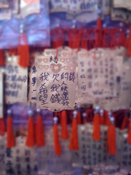 時,看到不少人在卡片上寫下今年的願望,然後掛在許願牌上,很想知道其他人許下哪些願望,便趨前觀看,在許多卡片中,第一眼就看到這個許願卡。