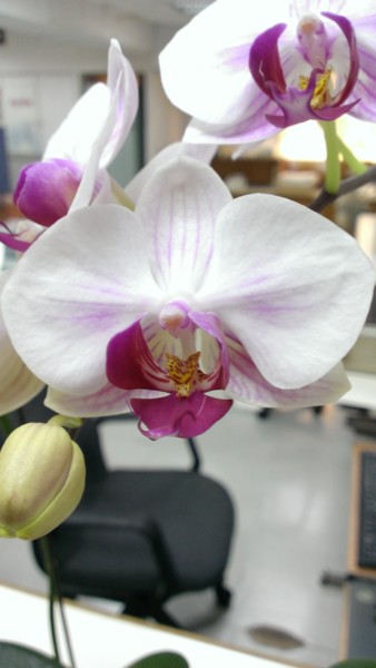 二樓主管為慶祝婦女節,特地送女性同仁蝴蝶蘭並祝婦女節快樂。