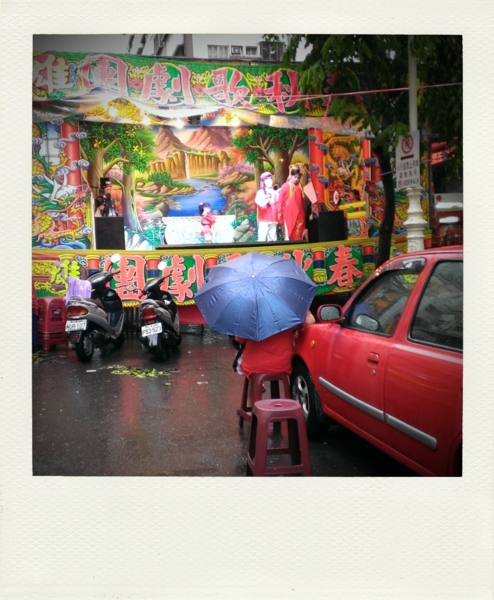 上週高雄是典型午後雷陣雨, 天氣情雨不定, 不過似乎不會影響這位大嬸欣賞歌仔戲的念頭, 一人獨自觀賞。