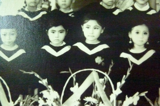 (這是我幼稚園畢業的照片,中間帶胸花的就是我!)