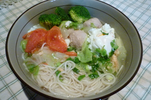放個貢丸加個蛋再加一堆蔬菜,簡單的一餐