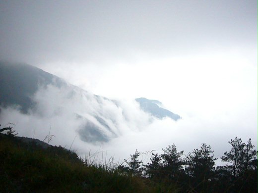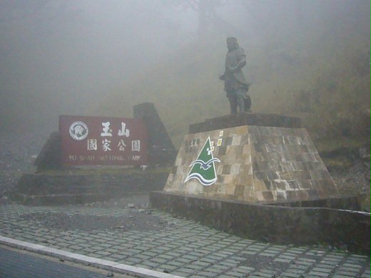圖一:由救國團啞口山莊往上走,經過大關山隧道後,便進入玉山國家公園的管區。這位勇士在濃霧中捍衛著玉山。