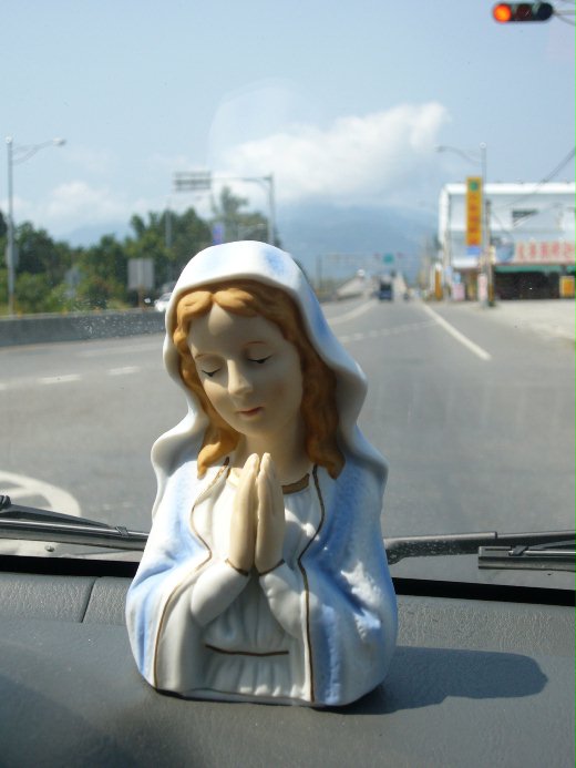 圖一:台東聖母醫院的送餐車上,一尊慈祥和藹的聖母塑像,引領我前去探索台東市許多不為人知的貧苦人家。