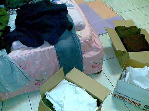 圖一:墨客與重要他人合力將衣物整理裝箱,送至物資募集站。
