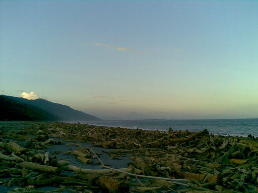 圖二:台東的海岸線集結了為數驚人的漂流木,其中不乏高價值木材,但請大家別一時興起撿拾回家,這可是林務局的財產唷!(據傳有人因為任意撿拾漂流木遭警方依竊盜罪法辦)
