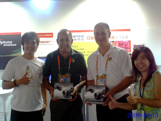 天瀚科技的攤位總是人滿為患,不但是2009台北聽奧精品展售會的人氣第一名,業績也是第一名! 本次和勁永科技(PQI)的合作非常成功,勁永的老版笑呵呵,一旁的創見也表達了合作意願!