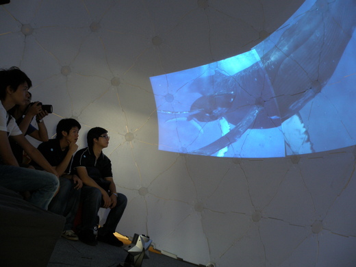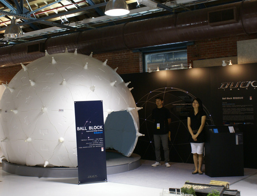 本次大可意念參加台灣設計博覽會,將兩項他們的創意結合,讓民眾坐在白色球體裡欣賞PocketCinema V10投影的畫面!