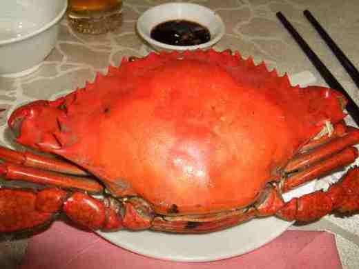 大閘蟹也是膏黃既多又美味,但蟹體較小,不比處女蟳,吃來很過癮.