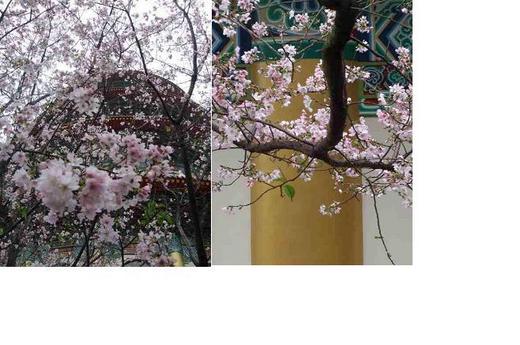 三芝天元宮的櫻花近年頗有名氣,花季到來之前,網上有人每天報告花況. 今年因氣候較暖,提早兩周於3月7日即開花,但隨後連下幾天雨,10日轉晴,網上預告請花迷把握這兩天賞花.原以為11日正好,不料11日一早又下起雨來.