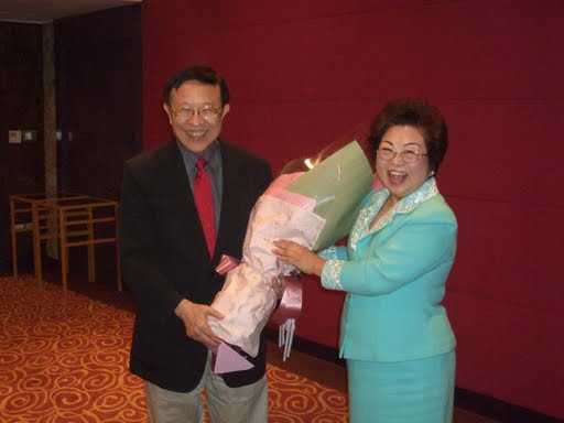 高教授慨捐演講費,囑咐屬下換成書送給英華會. 賴玫璇會長心想,演講費只夠買二三十本書, 不夠分給與會會員,她很阿沙力, 加碼湊足,總共買了50本高教授最新出版的 [讀書救自己] ,送給今天所有到場會員和來賓. 人手一本,皆大驚喜. 高教授說,這正是好人肯定有好報的又一例證.