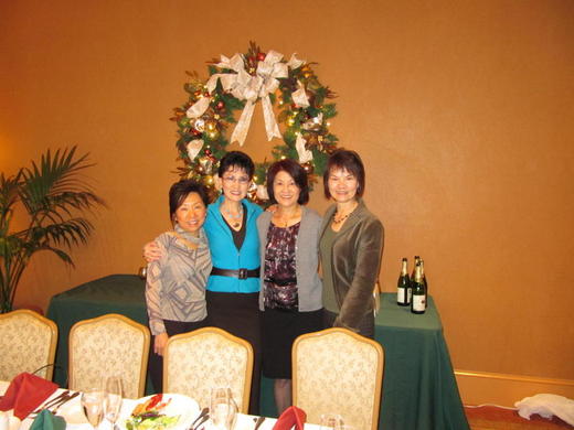 果然,在美西的郭企是行動派, 今天寄來她和龔淑芳,黃孝媛,王漱蓉的合照,是她們利用開灣區重聚委員會議時拍的,來給忠班同學賀耶誕快樂.