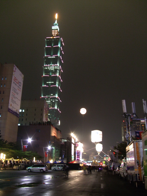 傍晚六時多,先把車子停到辦公室地下停車場,然後徒步經過台北市政府前廣場,那裏已擠了不少群眾,舞台上開始有歌者在熱場.經過紐約紐約和威秀,路邊好多小吃攤,都為跨年做準備來的,好熱鬧.101煙火真帶動不少商機呢.