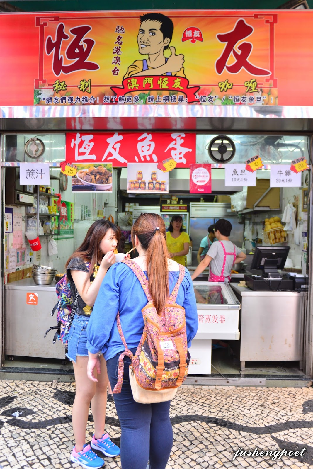用看的其實就夠,除非鼎泰豐等級可放膽大啖,畢竟餐飲廚內的用料做法,真使放心不下,最低價劣質的油和肉的使用,在粵港臺屢見不鮮。其實這次試過的澳門餐飲店大部分都是參考台灣的旅遊手冊(我也很怕誤觸地雷食品)。當初也奇怪為什麼「吃」在旅遊書上的篇幅那麼多,旅遊過後才發現當地菜蠻有特色的,不是只有燒臘而已。