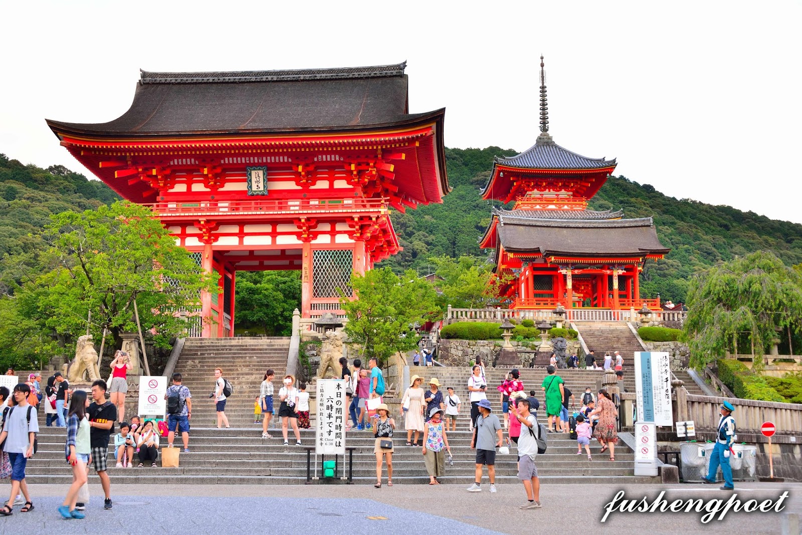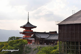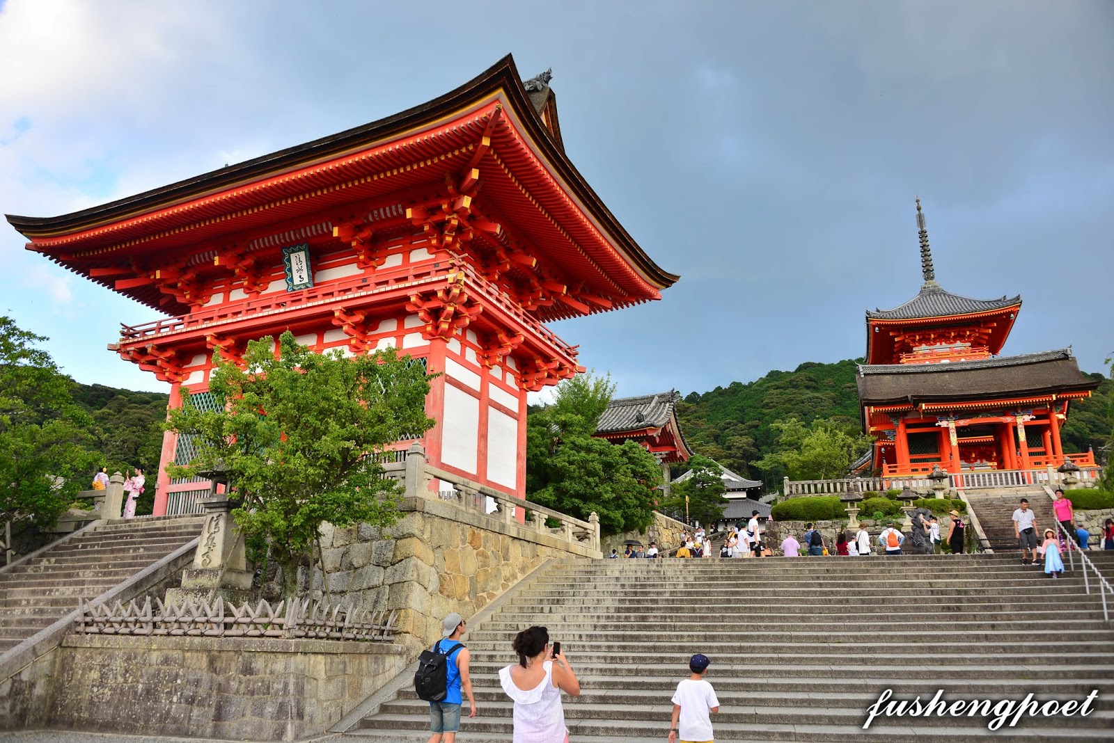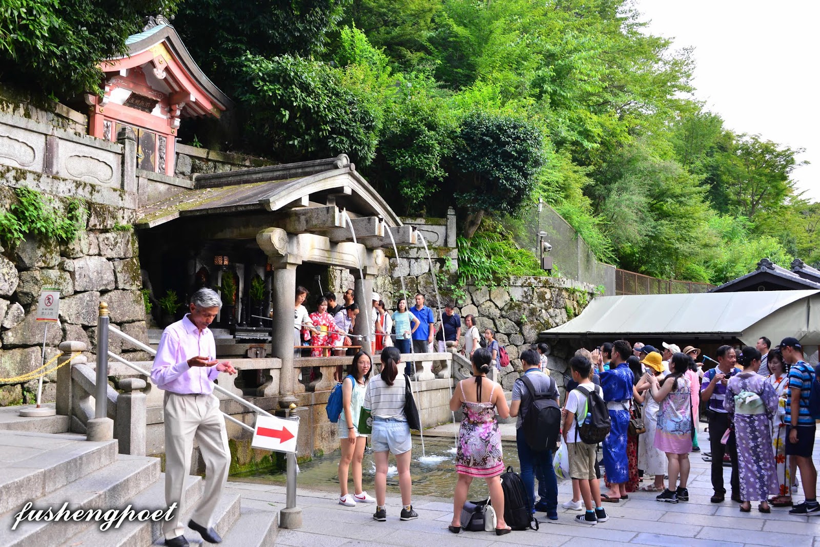 | 我們第一天中午飛抵關西機場,帶著預購的關西五日廣域票(Kansai Wide Area Pass,只能坐不能劃位的自由座車廂[non-reserved]) http://www.westjr.co.jp/global/en/ticket/pass/kansai_wide/ 搭JR線到達京都站,將大行李寄掛在Westin Hotel駐京都站的辦公室(Westin satellite concierge at Kyoto station,open hours 9:00am-5:00pm/6:00pm),並托其轉運到京都Westin Hotel(每口行李收300日元),之後就用預購的ICOCA card(可用來搭乘大部分的地鐵或巴士)搭巴士往清水寺。 京都-清水寺(Kiyomizu Temple) 清水寺位於音羽山(Otowayama)山腰,始建於西元780年,是京都最古老的寺院,毀於戰火後又於西元1633年由德川家光重建並一直保存現在的模樣。他名列世界文化遺產,其結構不使用釘子,建築高聳雄偉,遊客仰望後倍感莊嚴。清水寺屬於法相宗(唯識宗)的一支,主殿供奉著千手觀音,收費參觀,但主殿不許拍照。 | |