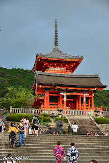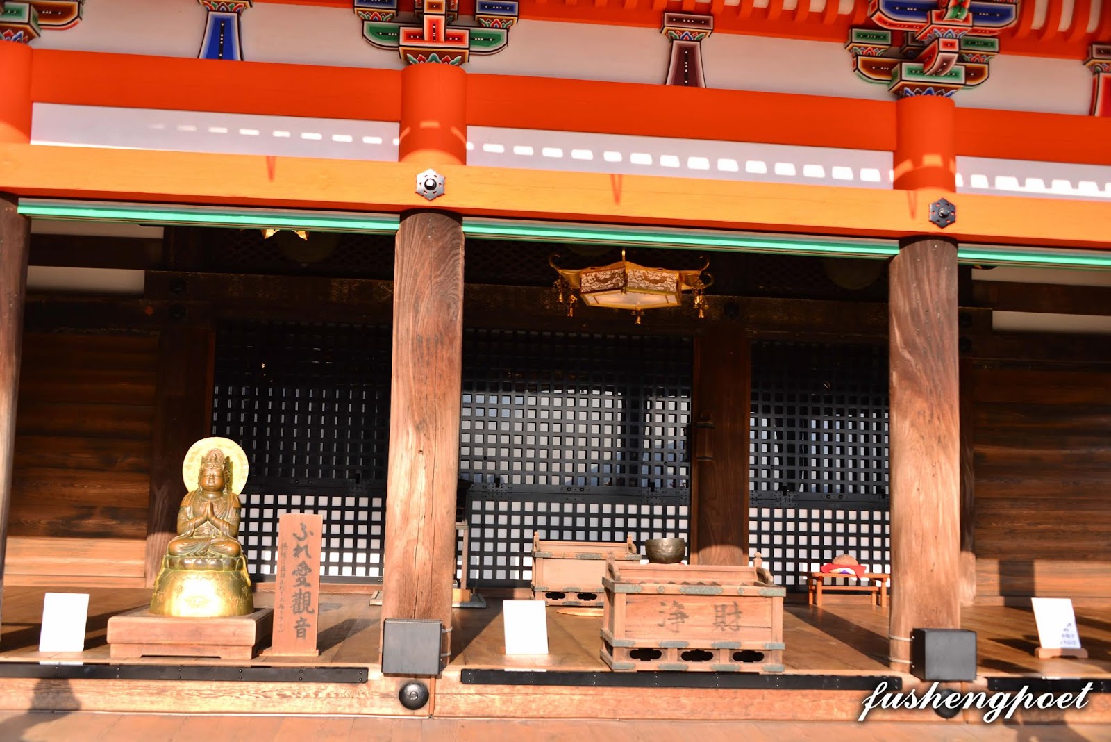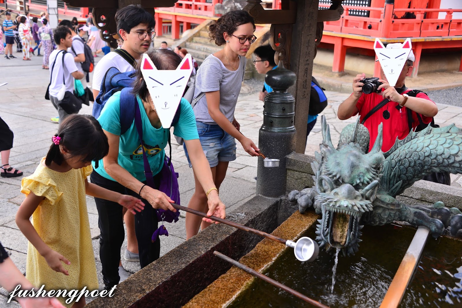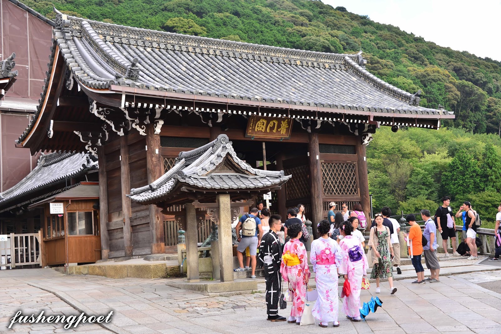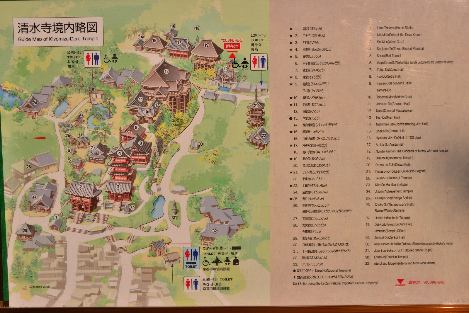 | 我們第一天中午飛抵關西機場,帶著預購的關西五日廣域票(Kansai Wide Area Pass,只能坐不能劃位的自由座車廂[non-reserved]) http://www.westjr.co.jp/global/en/ticket/pass/kansai_wide/ 搭JR線到達京都站,將大行李寄掛在Westin Hotel駐京都站的辦公室(Westin satellite concierge at Kyoto station,open hours 9:00am-5:00pm/6:00pm),並托其轉運到京都Westin Hotel(每口行李收300日元),之後就用預購的ICOCA card(可用來搭乘大部分的地鐵或巴士)搭巴士往清水寺。 京都-清水寺(Kiyomizu Temple) 清水寺位於音羽山(Otowayama)山腰,始建於西元780年,是京都最古老的寺院,毀於戰火後又於西元1633年由德川家光重建並一直保存現在的模樣。他名列世界文化遺產,其結構不使用釘子,建築高聳雄偉,遊客仰望後倍感莊嚴。清水寺屬於法相宗(唯識宗)的一支,主殿供奉著千手觀音,收費參觀,但主殿不許拍照。 | |