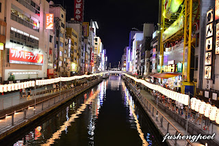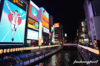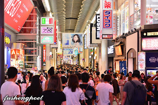 | 心齋橋筋/道頓堀(Shinsaibashi/Dotonbori,堀音哭) 心齋橋商店一條街是條以道頓堀河的戎橋以及地鐵心齋橋站為頭尾的商店街,心齋橋筋一條街有許多藥妝、服飾店,上方封閉不怕日曬雨淋,為大阪購物逛街的好地方,隔壁道頓堀河南岸的的道頓堀則是美食天地,更不可錯過,至於新潮的美國村則不在行程規劃裡,就像我也不會在日本吃蚵仔煎或鼎泰豐一樣。 | |