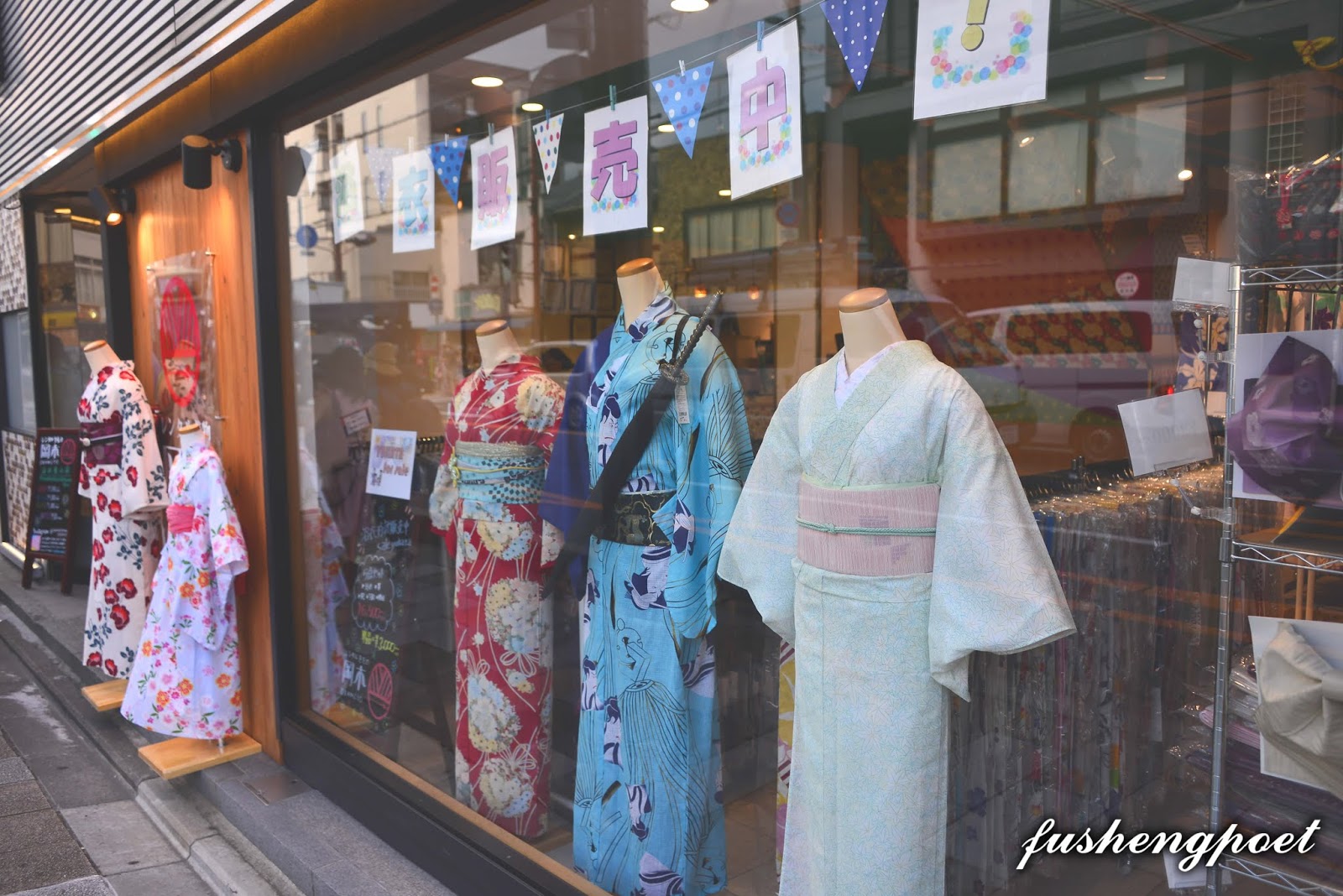 | 一下車就看到和服店,外國遊客租用和服偽裝日本人在這幾天屢「聽」不鮮(黃種人用看的還分不太出來)。 | |