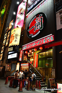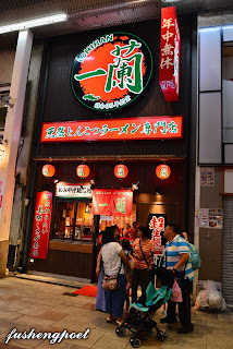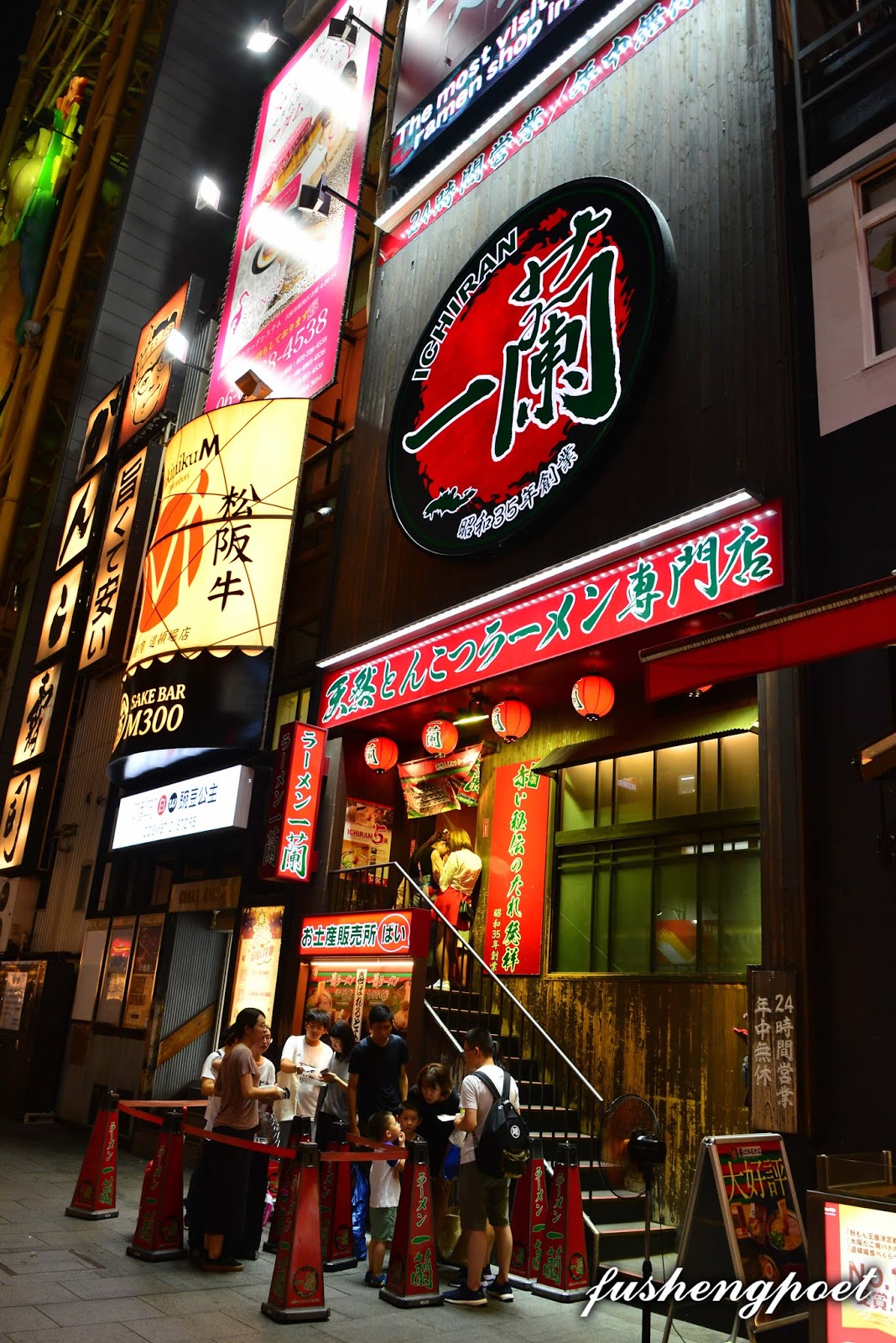 | 走到戎橋下道頓堀河北岸向東,可以找到一蘭拉麵,這家的隊伍已經排到不像話,所以決定換不遠處的另一家分店吃宵夜。 | |