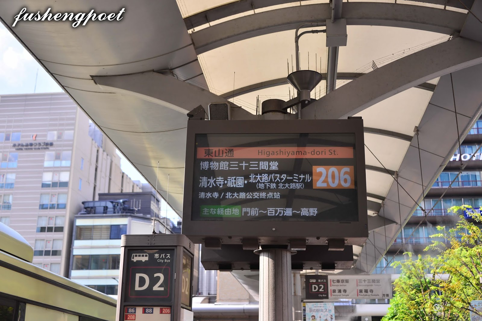| 在京都車站旁(往京都塔旅館方向)搭乘巴士206(D2候車區)或100(D1候車區)都可以到達清水寺。我們用ICOCA card(很像悠遊卡)付車資,用零錢付也可以。 | |