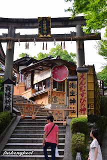 | 地主神社位於清水之舞台左邊,不是土地公廟,而是主導結緣、祈求戀愛運的神社。此時天色略晚,神社已關門。 | |