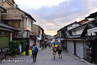 | 接近六點時,「松原通(清水道、清水坂)」上許多工藝品的店家開始關門。 | |