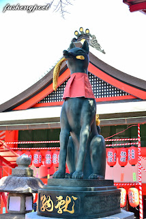 | 本殿前叼著鑰匙的狐狸,是稻荷神的使者。 | |