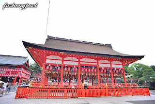 | 本殿。本殿曾在應仁之亂(1467年─1477年)燒毀,現今之本殿為明應8年(1499年)時所重建。狐狸面具應景吧? | |