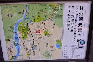 | 嵐山觀光地圖。其中渡月橋旁的嵐山駅是復古的嵐電-嵐山駅(Randen Arashiyama station),注意圖右側才是北方。 | |