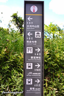 | 這條竹林小徑能到達的景點不少,這個路牌對來往行人提供步行至景點須時的參考。 | |