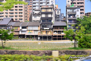 | 鴨川畔的高腳屋。搭乘Westin Miyako Kyoto Hotel最早班(8:15AM)的免費小巴士到京都車站,途經貫穿京都東半部的鴨川,鴨川本身並無特別,兩旁架高的木屋比較罕見。 | |