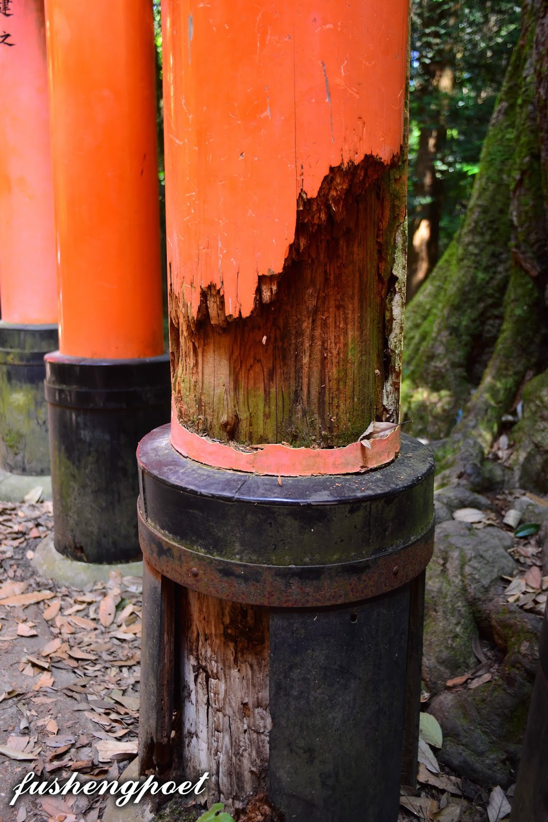 | 有些鳥居的支柱已經開始腐朽。 | |