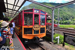 | 嵯峨野小火車慢條斯理地開到。 | |