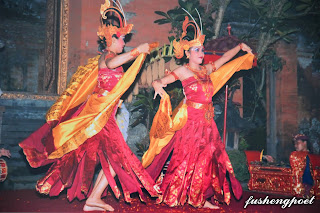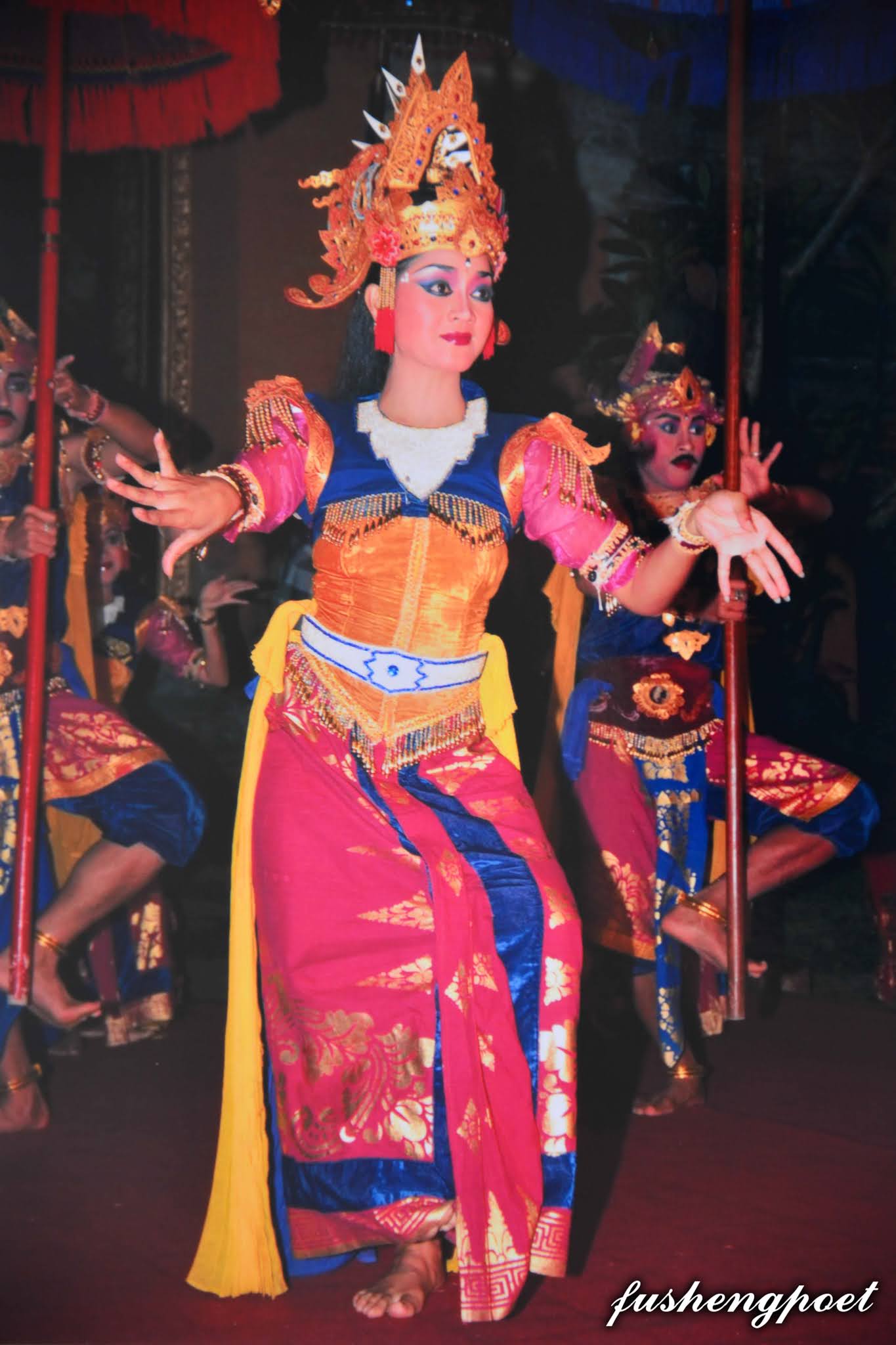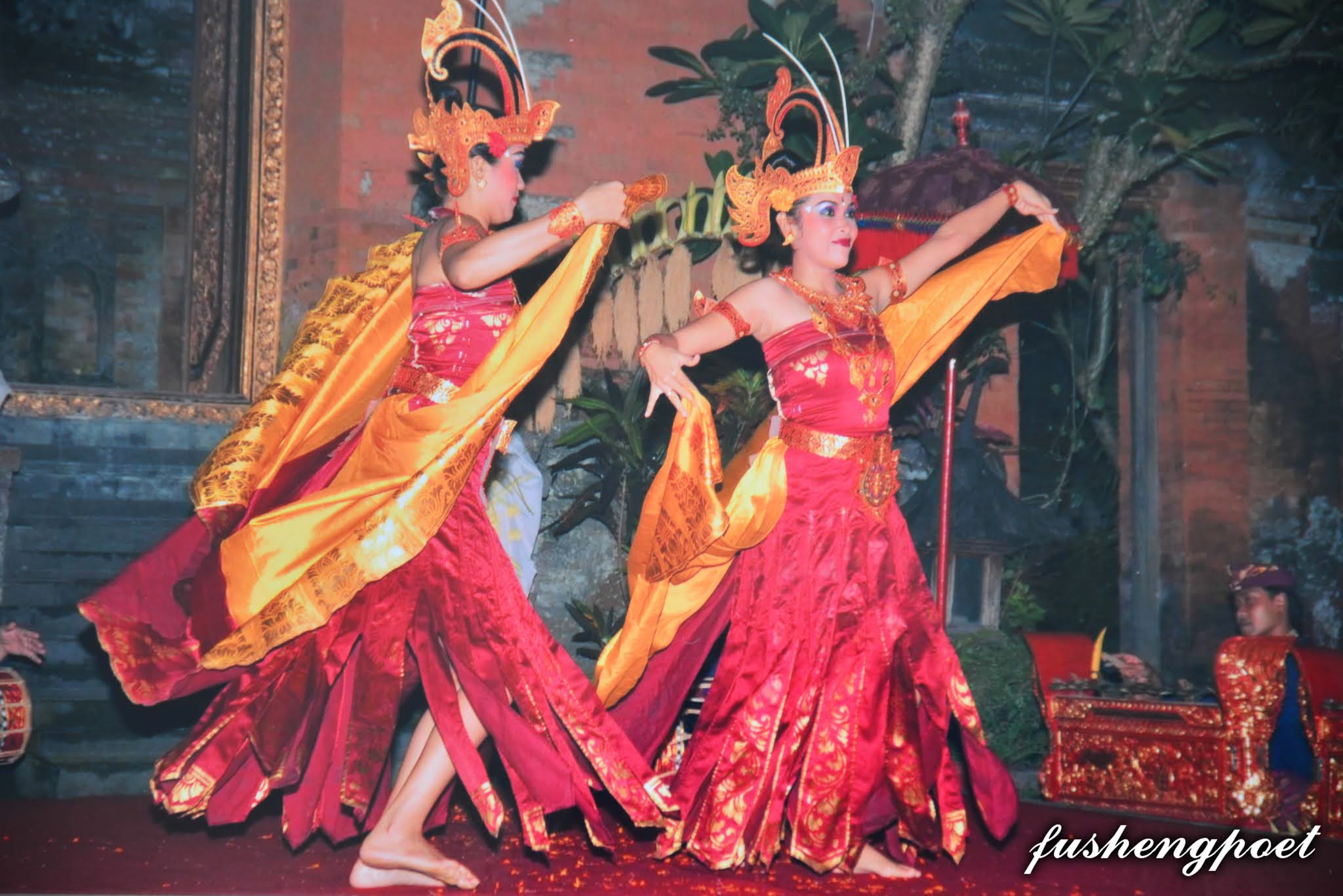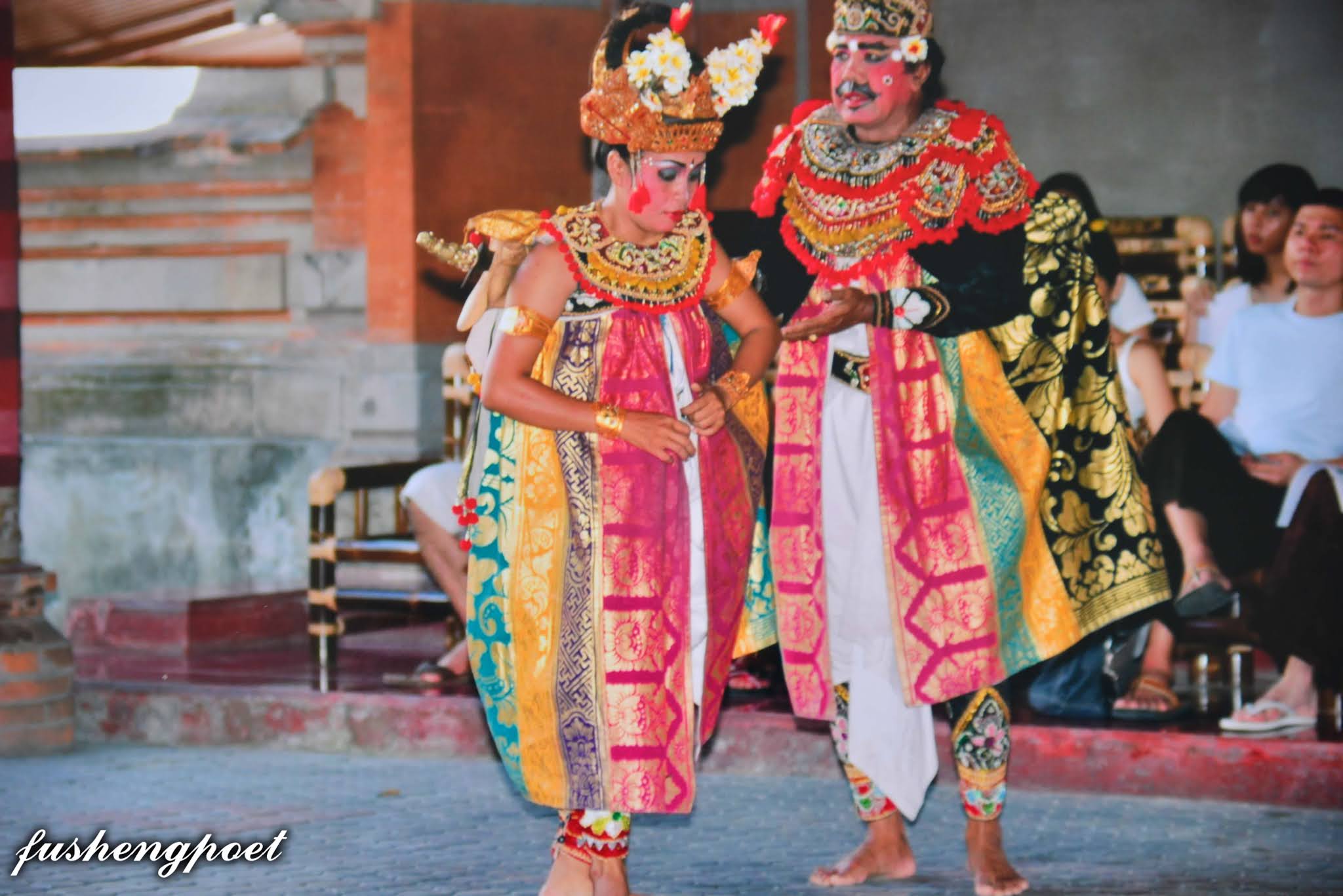 我們是在烏布皇宮(Puri Saren Agung)前欣賞夜間的雷貢舞表演,legong一詞由lega(快樂)和wong(人)兩個詞組成,將它們組合在一起,可以理解為“使人快樂的舞蹈”。 這個詞也可以分為oleg(舞蹈)和gong(加美蘭[gamelan],伴舞的傳統音樂),所以雷貢舞也是舞者在加美蘭音樂下的輕柔舞蹈。在19世紀後期雷貢舞在巴厘島宮廷裡逐漸盛行,通常會挑選未進入青春期的女子作為主要舞蹈者,他們從五歲左右開始進行嚴格的訓練,四肢、指節、眼神等等都有嚴格的要求。這些舞者在社會上享有高聲譽,常成為皇室貴族或富商的妻子,不過結婚後,他們不再跳舞。烏布王室早在20世紀初就被荷蘭人廢黜,「舊時王謝堂前燕,飛入尋常百姓家」,原來皇室獨賞的雷貢舞走入普羅大眾,未成年的舞者限制不復存在,不過這對舞蹈者經驗的累積而言,未嘗不是好事。