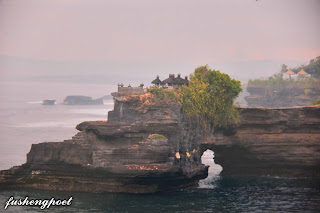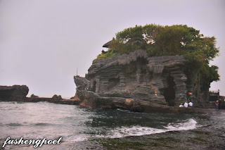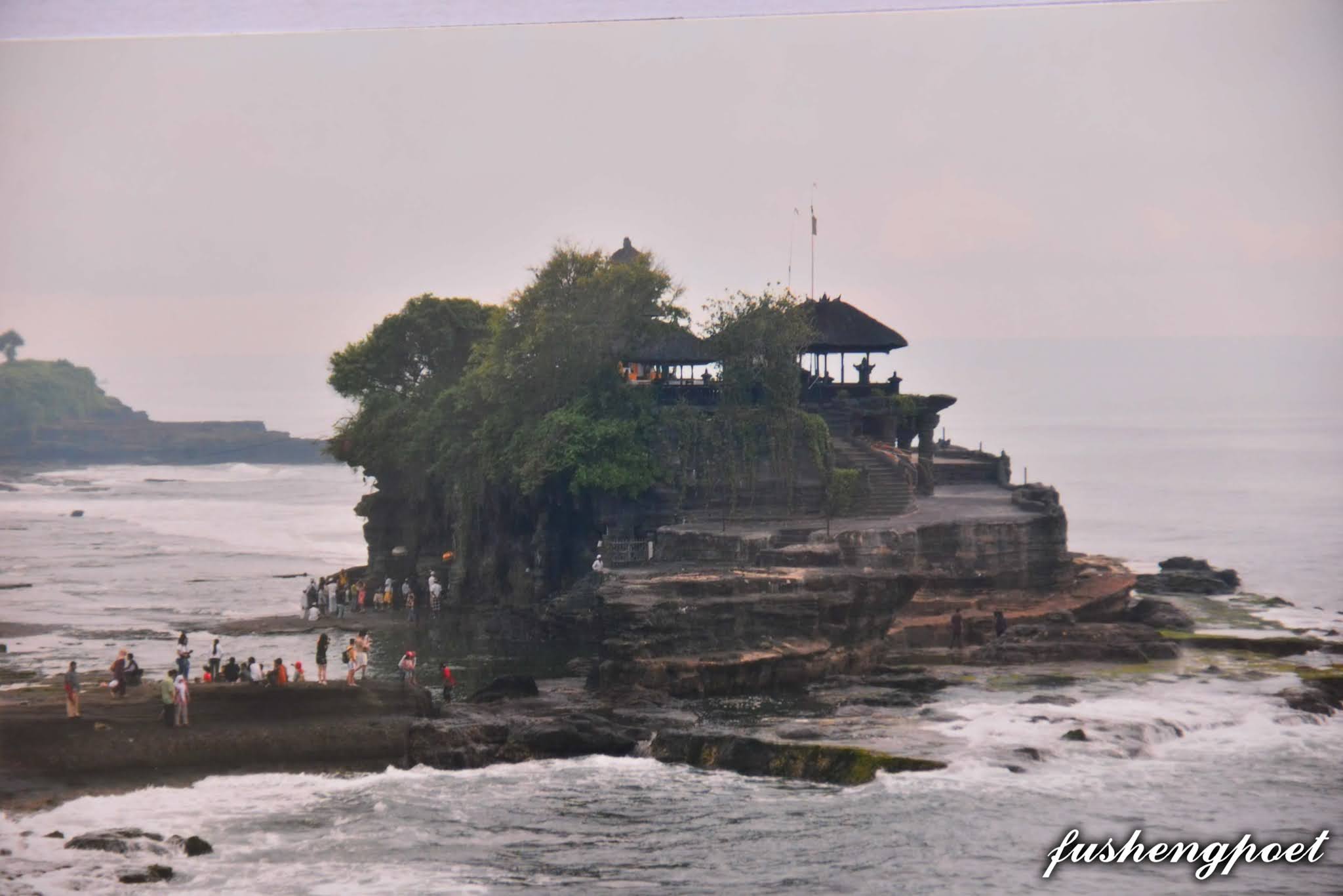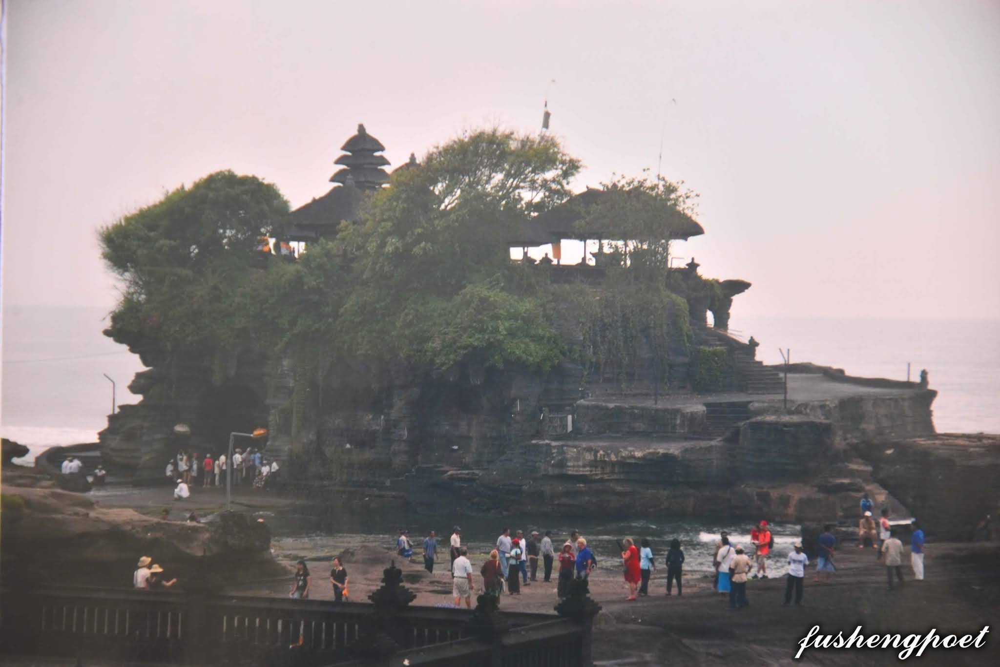 "海神廟位於塔巴南,距登巴薩(巴厘島省會)約20公里,蓋在一個經海水沖刷而形成的離岸大岩石上,在海水漲潮時,與其連接的通道會被淹沒,無法通行,必須等待退潮才能進入廟宇參觀。海神廟是巴厘島七座濱臨海岸廟宇的其中之一,每一座都在彼此視力可達範圍之內,形成一個西南岸的廟宇群。