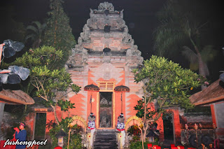 | 烏布王宮始建於16世紀,由著名的藝術家們一手設計,共有60間房,整座宮殿氣勢恢宏,圖中的大門尤為翹楚。大門前也是這天雷貢舞的表演地點。 | |