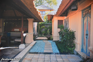| 院子裡的主要走廊。左手邊為餐廳,右手邊為臥房,遠處左手邊為villa大門入口,遠處右手邊為浴室。 | |