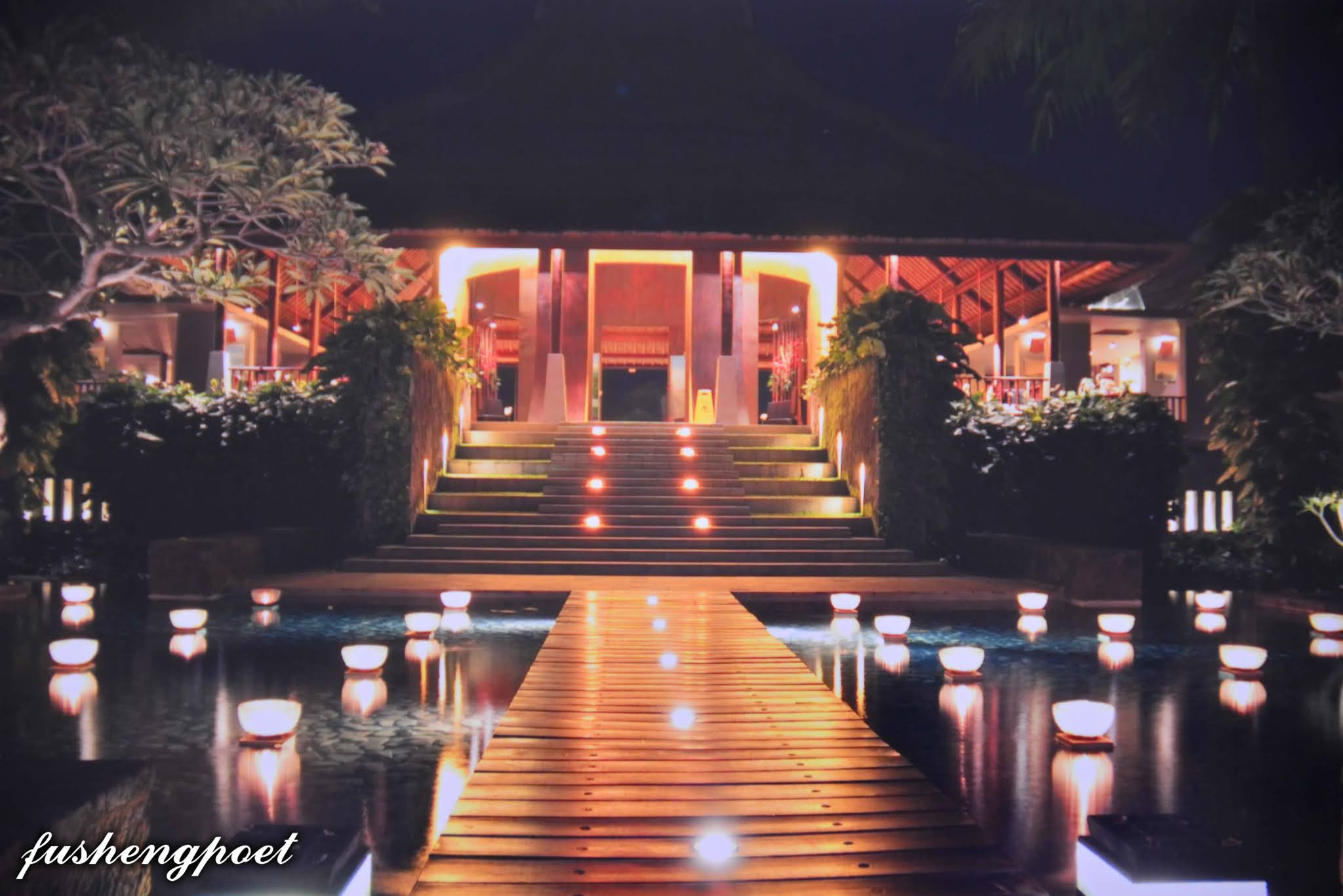 回歸正題,那時候剛好去巴厘島旅遊很便宜,因為2002年底巴厘島的恐怖攻擊還沒使眾多人們敢於赴當地旅遊,當時旅行社提供我們兩人搭乘長榮由台灣飛該地的來回票,再加上金巴蘭(Jimbaran)四季飯店兩晚,烏布瑪雅(Ubud Maya)飯店兩晚,總共一人兩萬台幣。我們另外在第一天和最後一天訂了其他旅館。