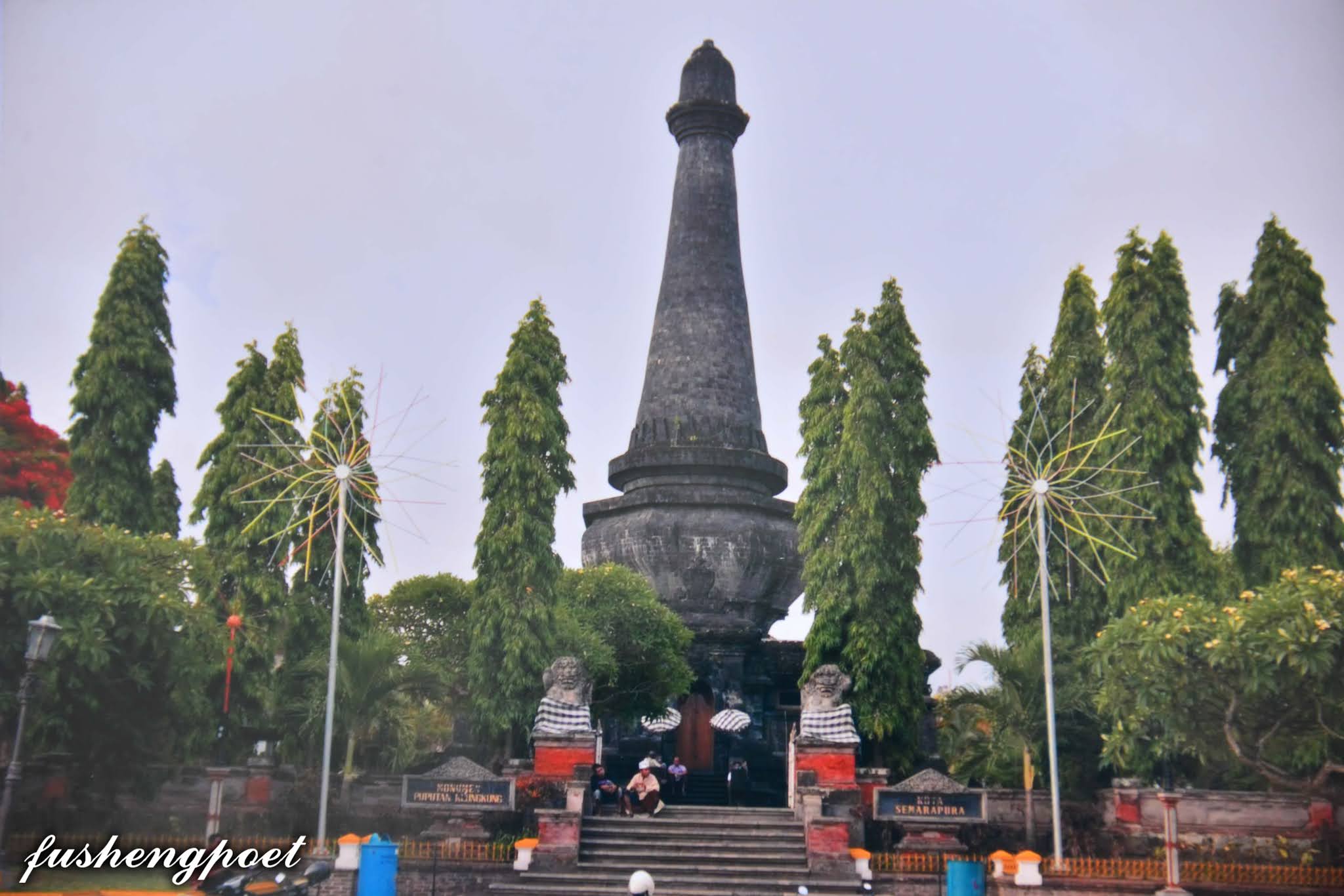 Puputan Klungkung Monument。1908年,荷軍進攻Tabanan和Klungkung,在與荷蘭人的最後對抗中,擁有200名士兵的可倫坤王侯(Raja)試圖襲擊荷蘭人,但遭到槍擊。國王在Puputan儀式中自殺,國王的六位妻子隨後自殺身亡,隨後有200名追隨者自殺。在印度教中,使用黑色石材雕刻紀念碑很重要,因為黑色表示戰爭已經結束。Puputan Klungkung紀念碑高約28米,形狀是一個圓錐體,稱為Ligga-Yon(位於Semarapura市中部,建在面積為123平方米的區域中。這座紀念碑建築是用黑色石頭建造的)。 Puputan Klungkung紀念碑是1908年4月28日星期二針對荷蘭殖民者的歷史性戰爭的紀念館。院子的每個角落上都有四個涼亭。在lingga地面上,有一個正方形的大廳,該大廳在東西,南部和北部具有4個門戶。底座由19幅畫的蓮花裝飾在八個側面。所有這些數字都反映了1908年4月28日舉行的Puputan KLungkung戰爭的日期。 | |