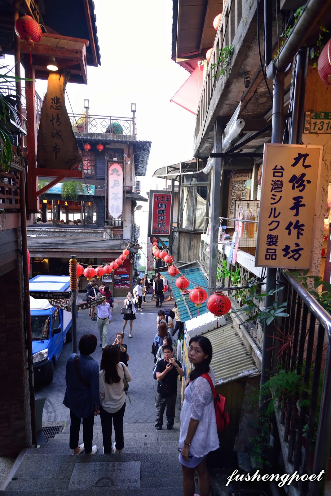 | 豎崎路一路都是階梯,上自九份國小往下途經阿柑姨芋圓、戲夢人生、阿妹茶樓等地。 | |