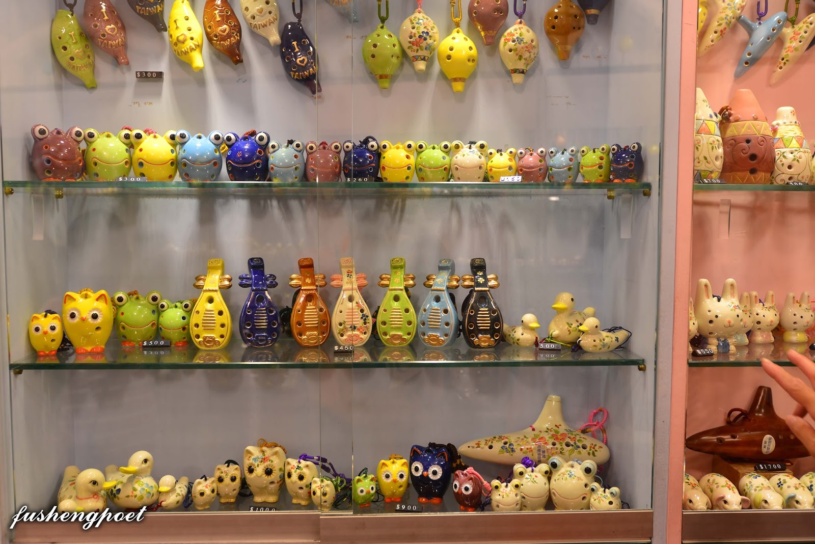 | 這家賣的是陶笛,造型多樣。 | |