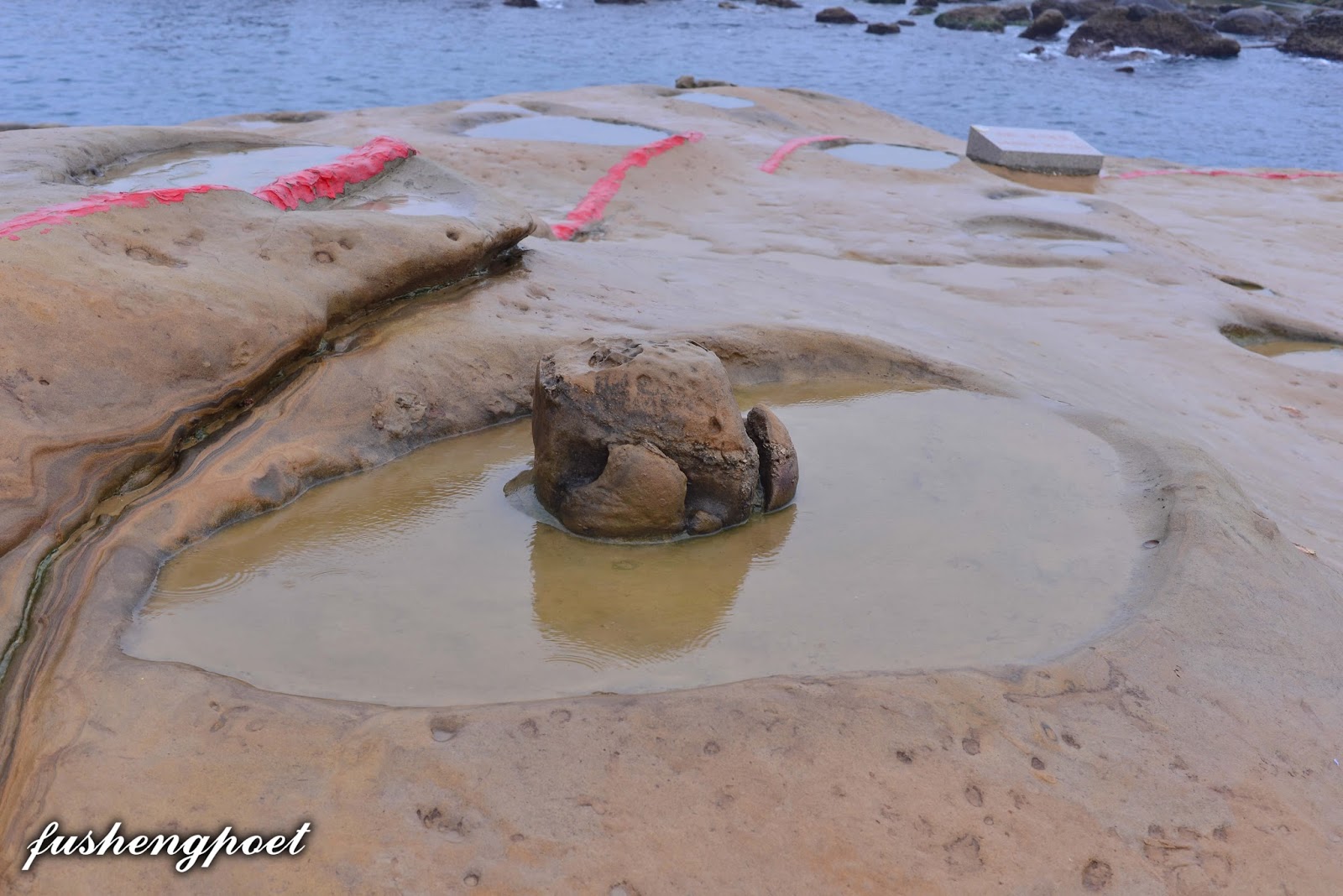 | 類似燭台的奇石,旁邊的紅線不可超越,否則可能會被突然而來的海浪襲擊。 | |