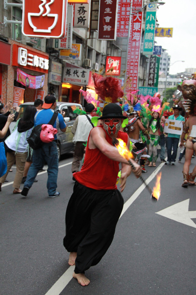 十月九日內湖踩街藝遊秀.今年主題以花來展示各式各樣的創意花車和裝 扮.及彩繪造型.路線從成功路方濟中學至大湖公園.經過之處.街坊鄰居聽到響亮森巴鼓聲.皆爭先恐後聚集道路兩旁觀賞熱鬧嘉年華隊伍.很稀奇.沒看過!引起路人好奇詢問?要如何參加.! 因此.更確定明年將更熱鬧!