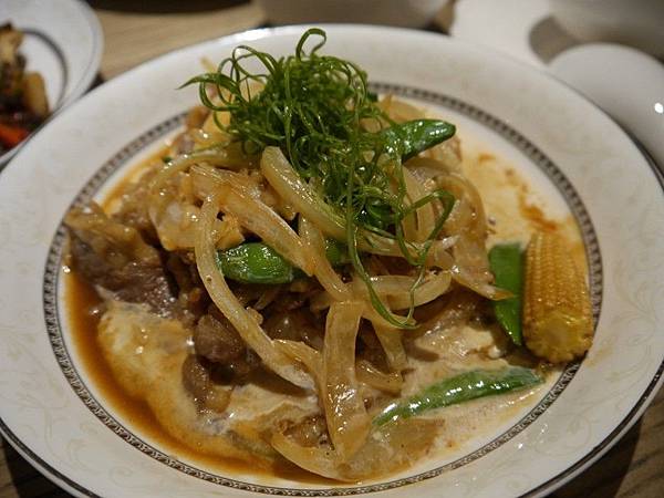 炒牛肉搭上醬油的甜味、濃濃的奶香,吃起來嫩又爽口。