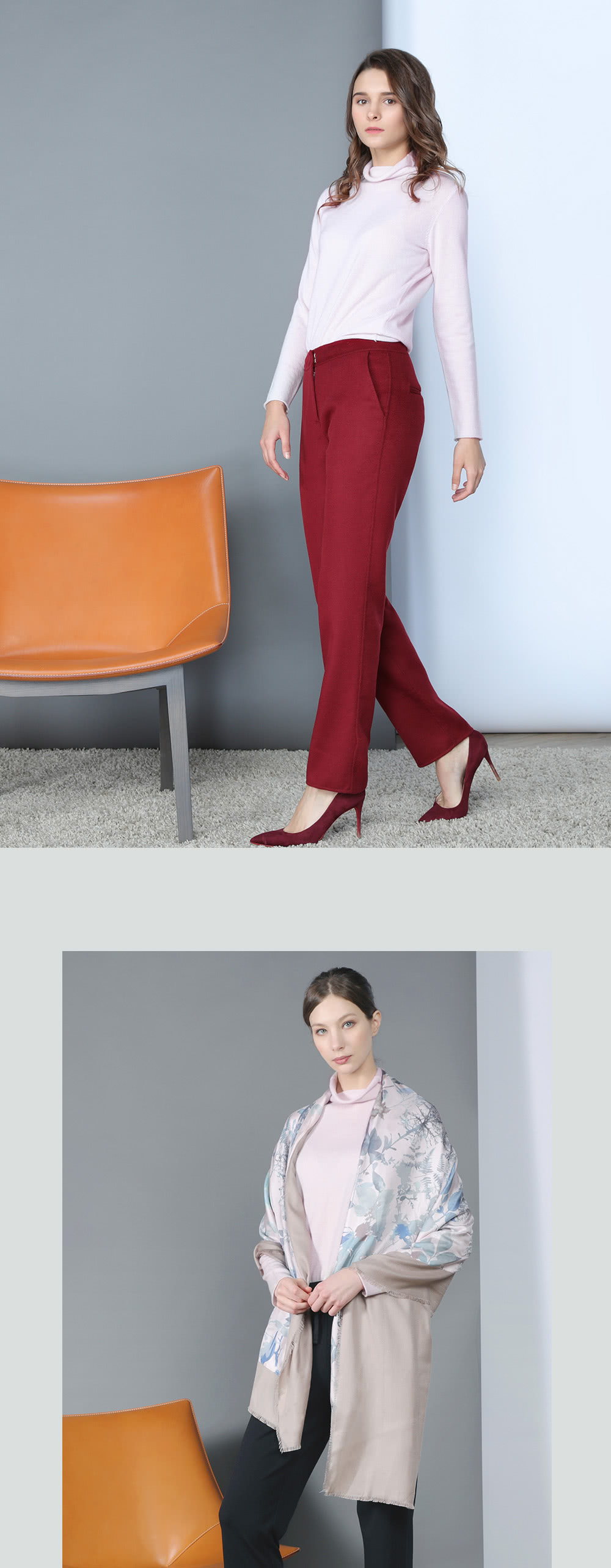 6334235 矜蘭妃100%喀什米爾捲邊鬆高領羊絨衫組