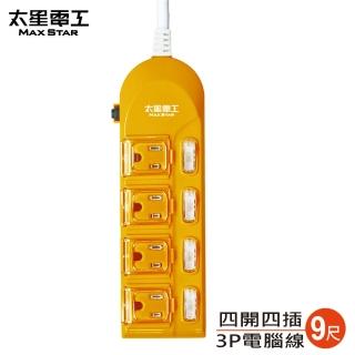 【太星電工】蓋安全彩色延長線三開三插/3P15A9尺(橘.紅.綠)