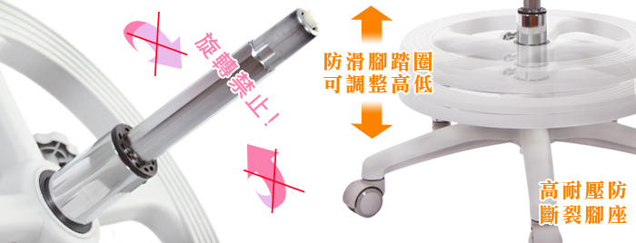 加上獲得合格認證,且為 台灣製造無段式升降、防旋轉氣壓棒,