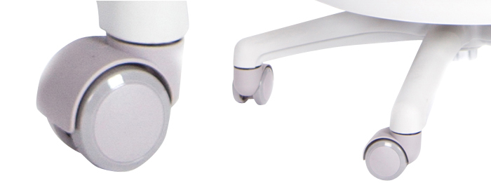 本款使用『PU壓力輪』:椅子承重時,輪面會因重量下壓固定不滑動;椅面沒有重量時,保有『一般滑輪』作用方便滑動,輪具為硬質PU,不傷木質、大理石地板,因小朋友重量較輕,還是可微推動,相較固定輪方便許多,不需要一直幫小朋友搬動座椅唷!!