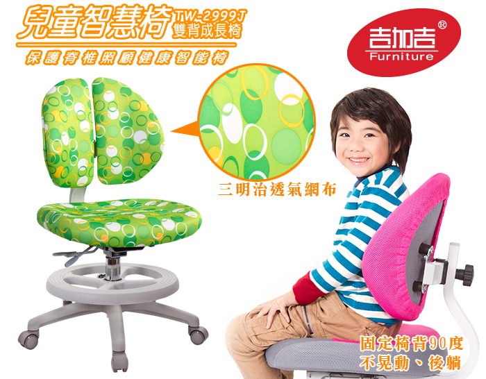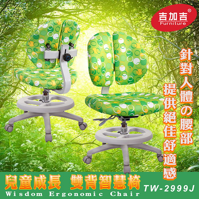 吉加吉 雙背工學 成長椅 TW-2999J 圈圈綠色